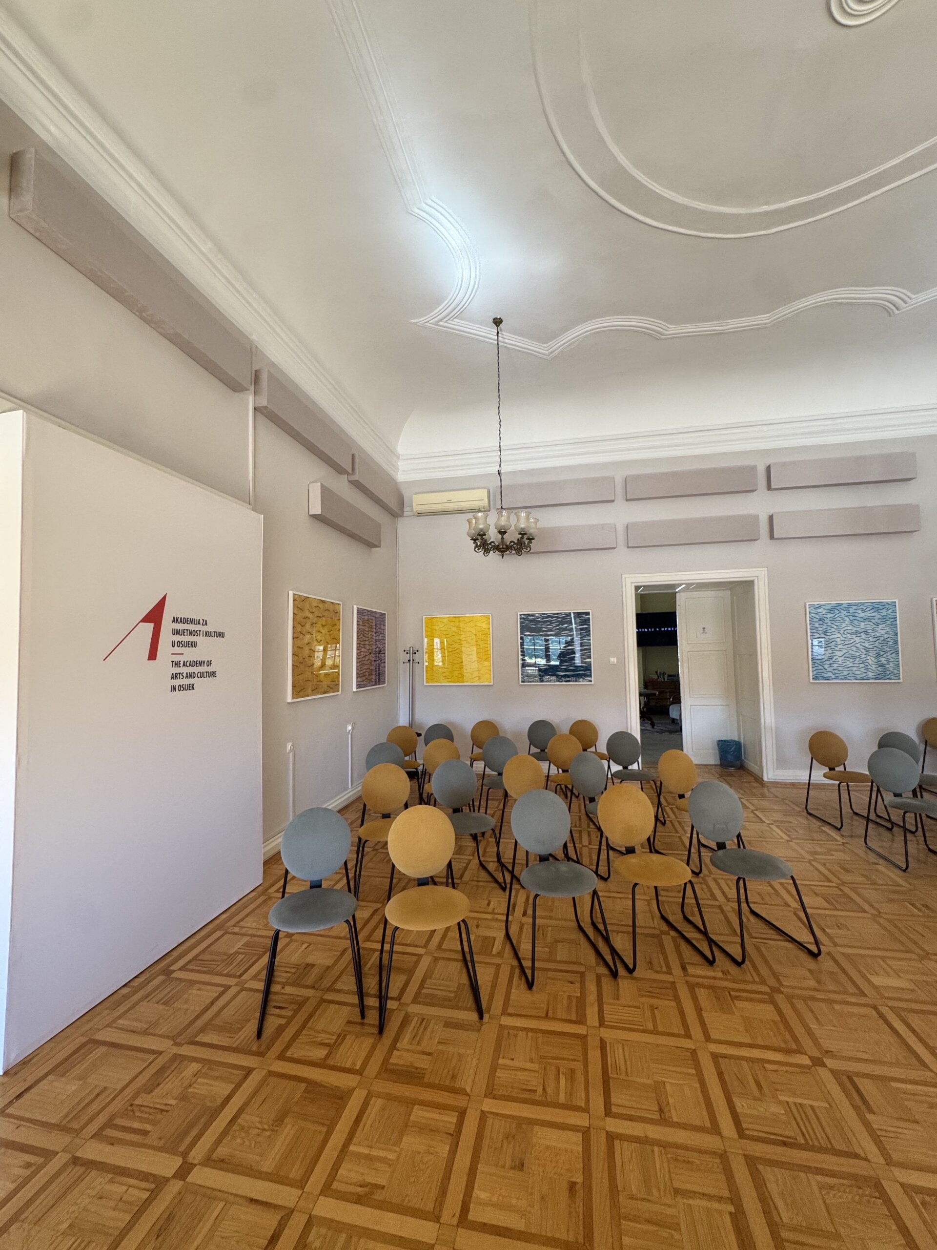 Cultural Center Osijek is a new element in the puzzle of Osijek culture with the goal to recognize new sources of culture. The ground level hall brings first impressions to visitors and therefore the acoustics of the space is very important. In addition to solving a major acoustic problem, the larger black panels fit aesthetically perfectly.