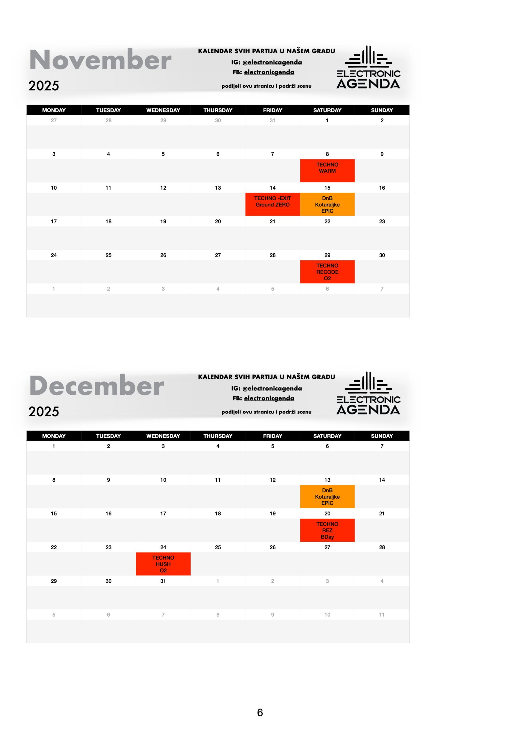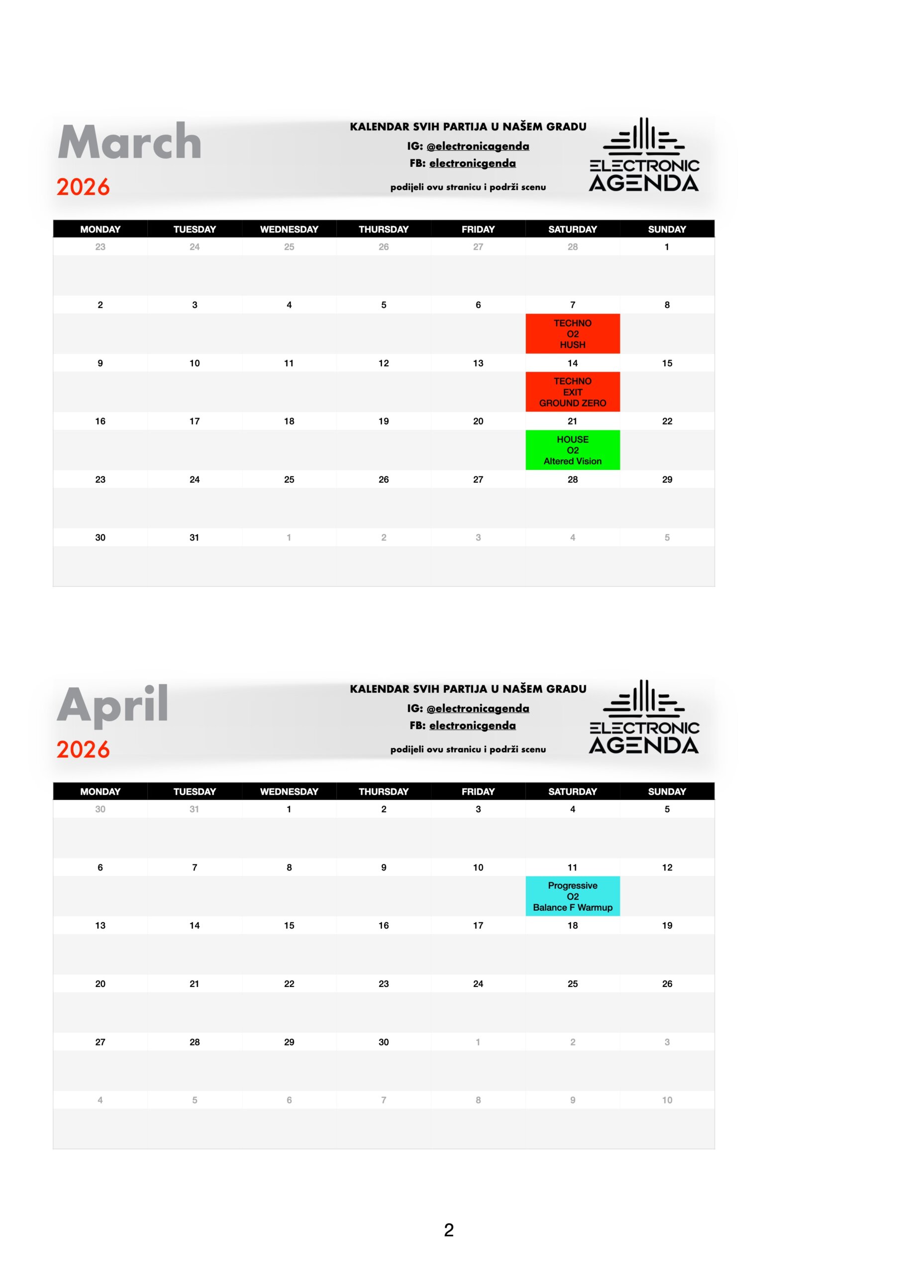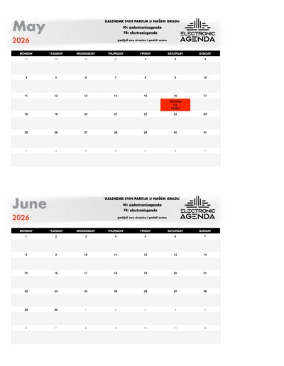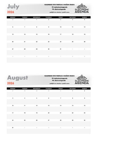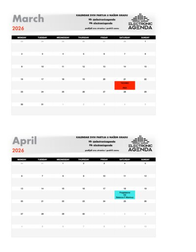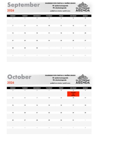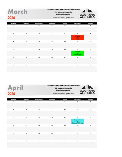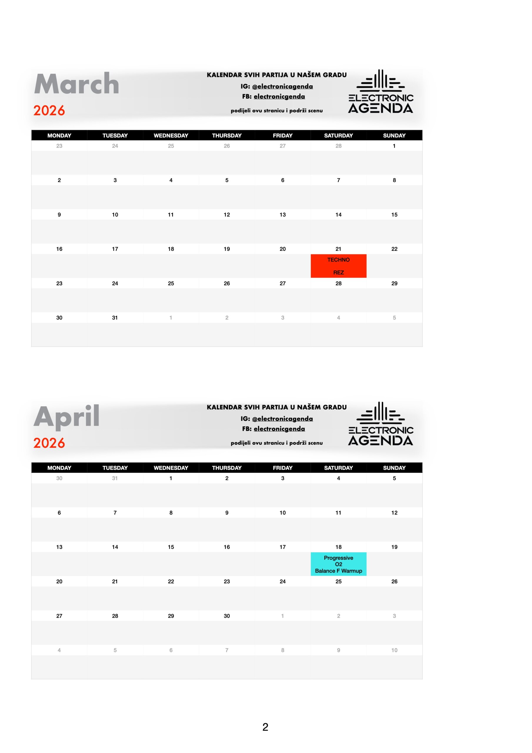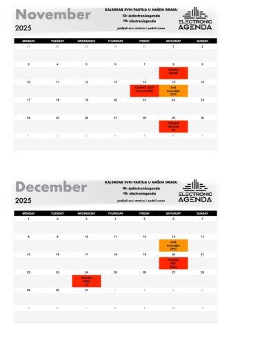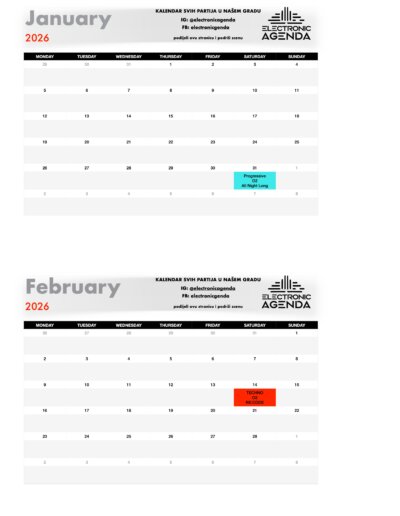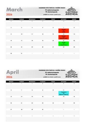 Electronic Agenda je jedini kalendar partija za naš grad. Nakon što smo skoro dvije godine uspješno radili među organizatorima na izgradnji scene, tu suradnju sada nastavljamo javno – pred svima vama!
