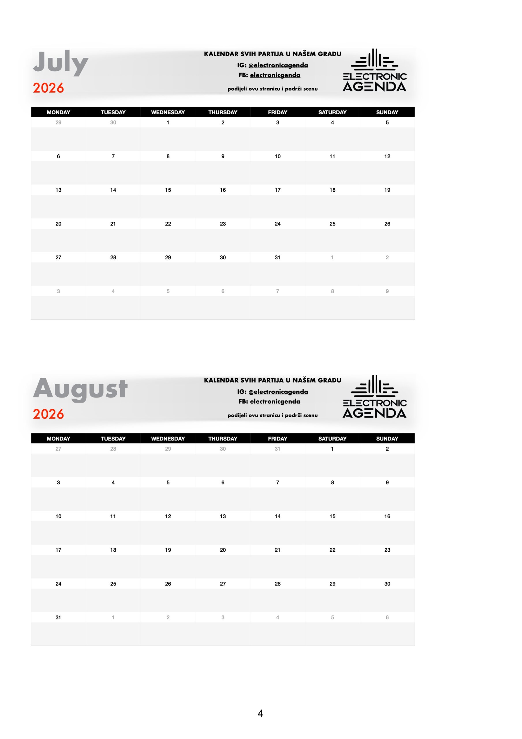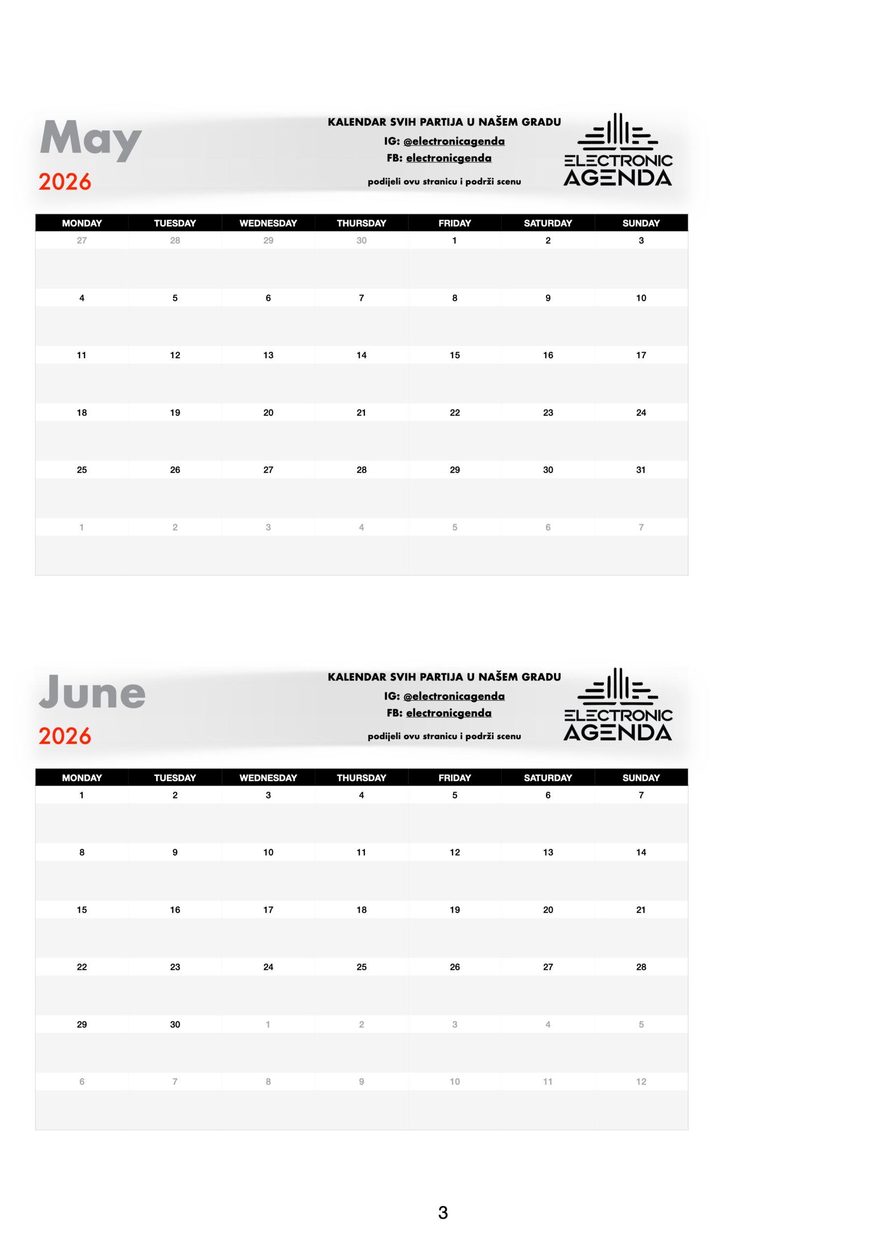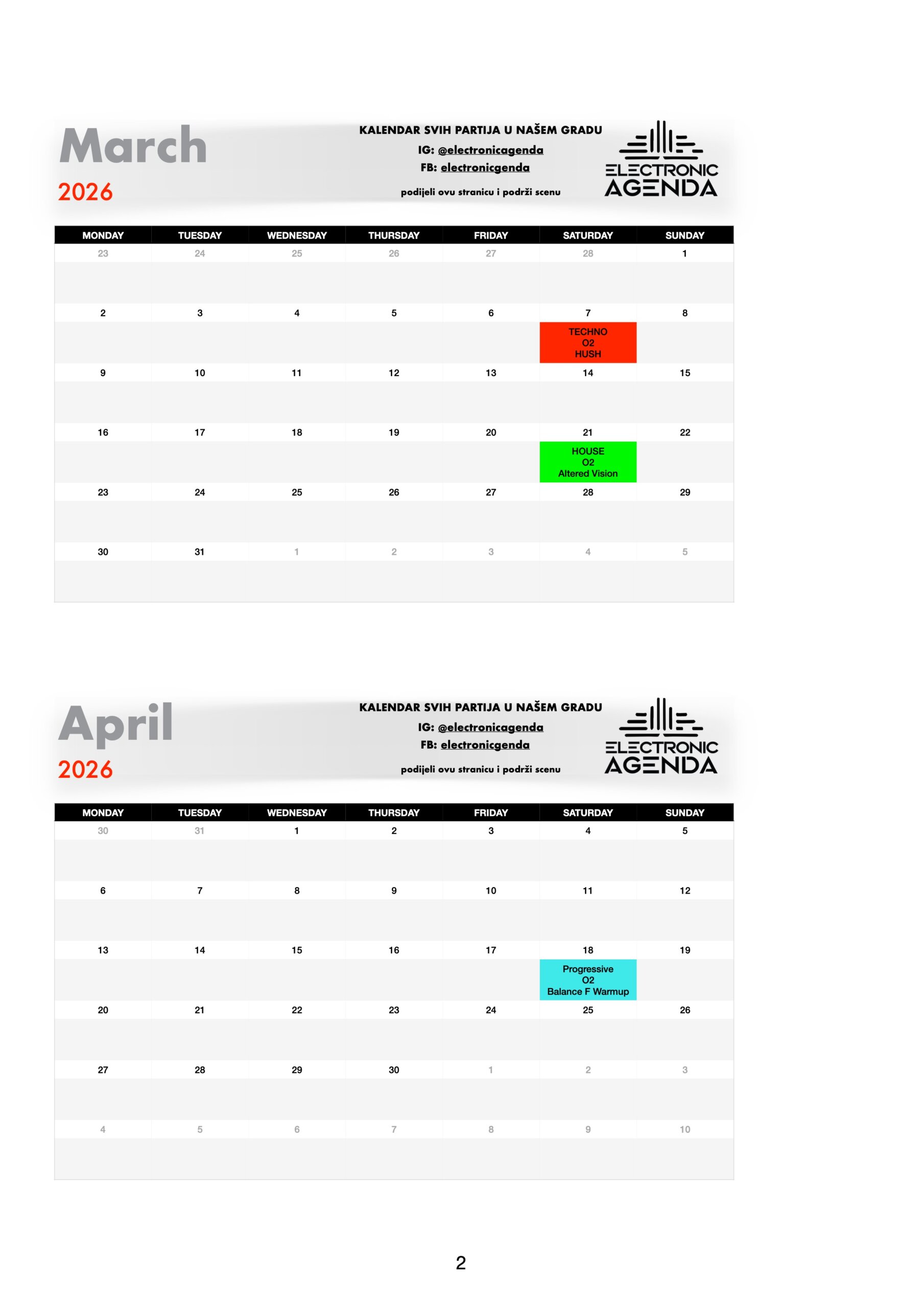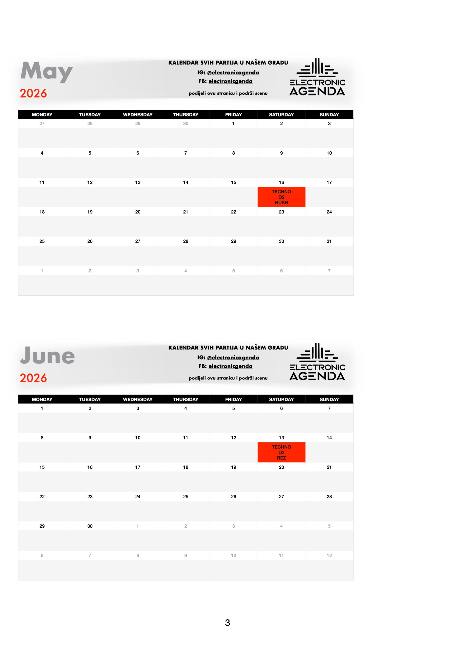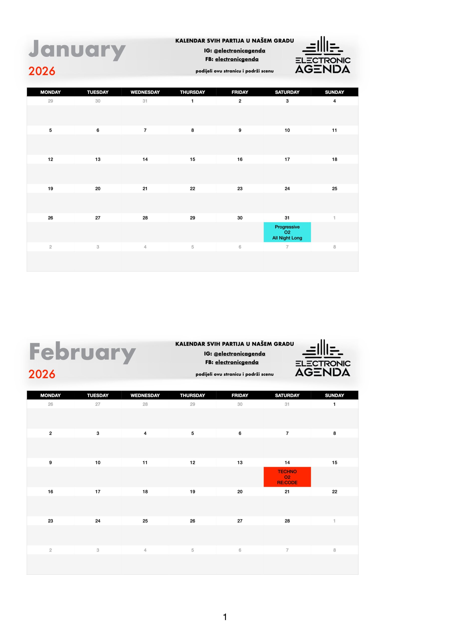 Electronic Agenda je jedini kalendar partija za naš grad. Nakon što smo skoro dvije godine uspješno radili među organizatorima na izgradnji scene, tu suradnju sada nastavljamo javno – pred svima vama!